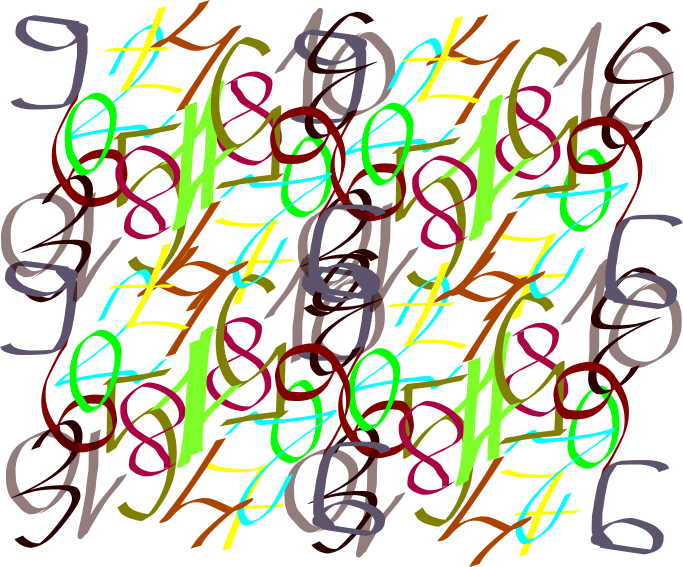 This is a colorful and intricate pattern of various numbers arranged in a visually appealing manner. There are at least 13 different colors used to represent the numbers, making it an interesting and vibrant display. The numbers are spread across the entirety of the image, with some appearing larger than others, creating a sense of depth and balance within the composition. This artistic arrangement of numbers can be appreciated for its creativity and attention to detail, as well as its ability to evoke a sense of curiosity about the underlying mathematical concepts.