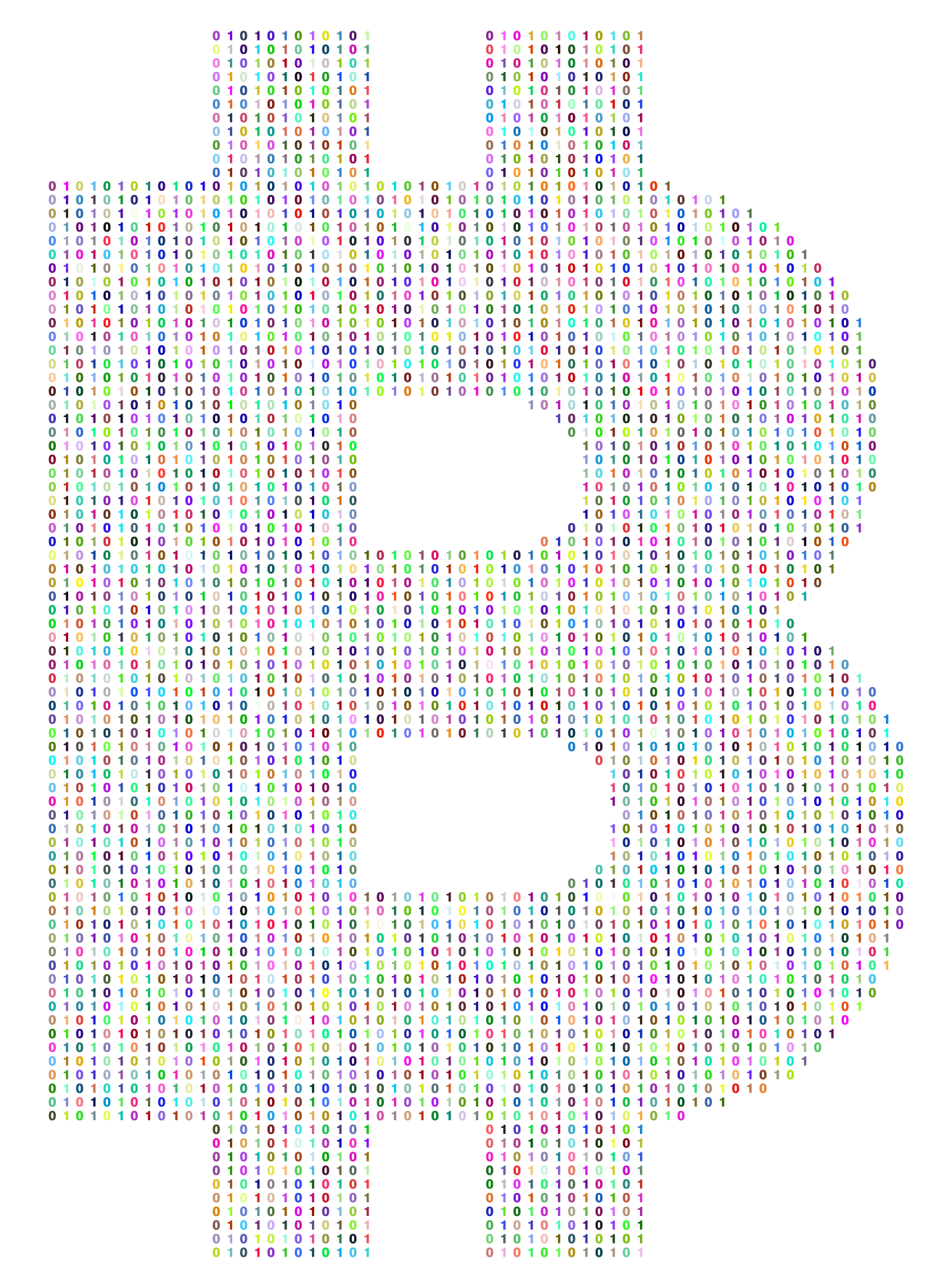 This features a large, colorful, and detailed representation of the letter "B" in binary code. This unique design is made up of many small squares that are arranged to form the shape of the letter. The squares come in various colors, creating an eye-catching and visually appealing display. The intricate pattern of the squares gives a sense of depth and complexity to the overall design, making it an interesting and engaging piece of art or decoration.