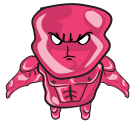 This features a large, muscular cartoon character with an angry expression on its face. It appears to be a red and pink color scheme, giving it a unique and eye-catching appearance. The character's body is filled with muscles, indicating its strength and power. Its facial expression suggests that it might be ready for action or confrontation, adding to the overall intensity of the scene.
