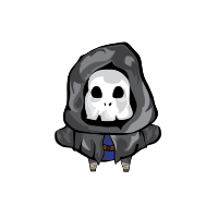This features a cartoon-like character with a skull face, wearing a gray cloak. The skull is the main focus of the character's appearance and stands out against the background. The cloak has a black outline, adding depth to the design. The overall style gives off an eerie vibe, making it suitable for Halloween or other spooky themes.