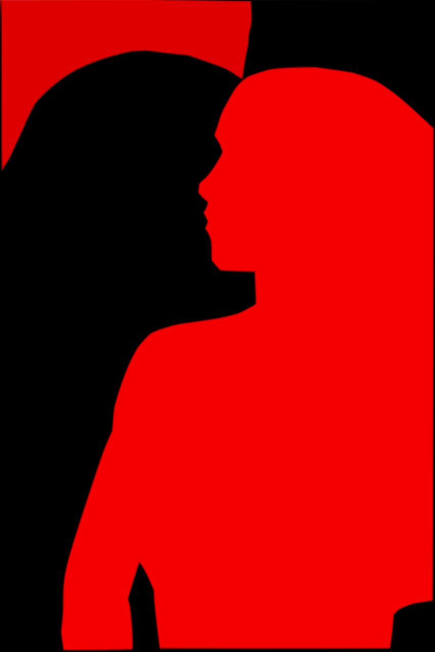 This features a red silhouette of a woman's head, with her face obscured by the red background. The woman appears to be wearing a dress and has long hair that is visible in the negative space around her. The overall effect creates an artistic and visually striking representation of the female subject.
