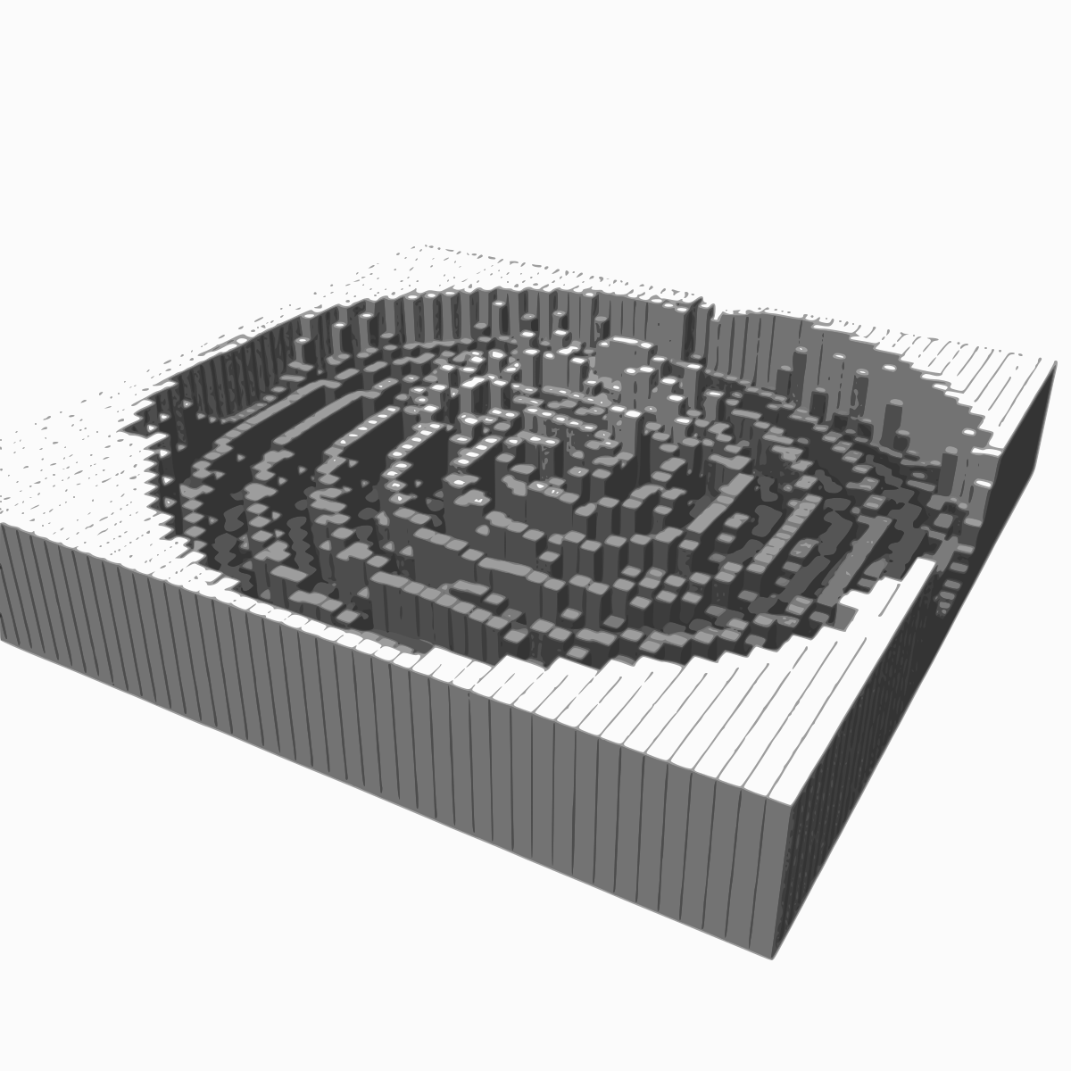This is a 3D model of an intricate maze, resembling the pattern of a city. It features a large central circle surrounded by numerous smaller circles, creating a complex and visually appealing design. The entire structure appears to be made up of interconnected lines, giving it a unique and artistic appearance. This 3D model could potentially represent an architectural concept or serve as a creative visualization for various purposes such as digital art or urban planning.