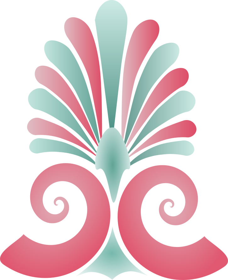 This features a beautifully designed anthemion, which is an ornamental design often found in architecture and art. This particular anthemion has a pink and green color scheme, giving it a vibrant and eye-catching appearance. It appears to be a small fountain, adding a sense of depth and dimension to the overall design. The intricate details on this anthemion make it an attractive focal point in any setting where it is displayed.
