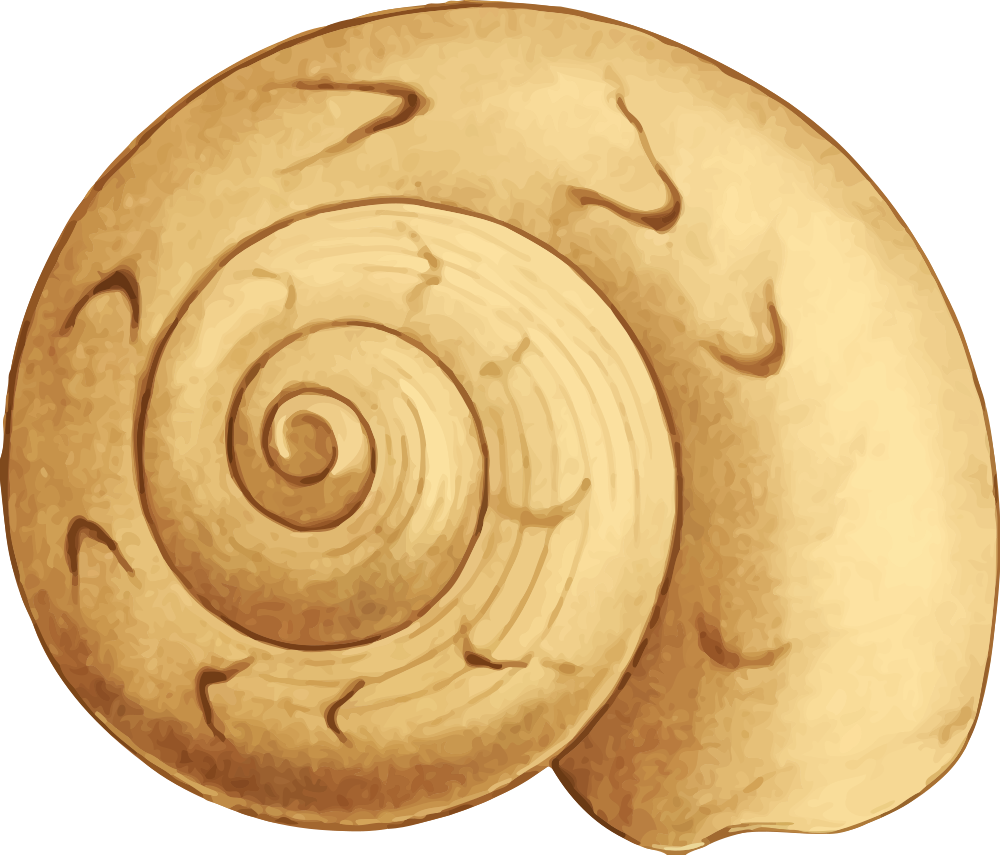 This features a brown, hand-drawn shell with a spiral pattern. It is an artistic representation of a seashell, possibly a snail or a clam. The shell has a unique and intricate design that makes it stand out as a piece of artwork. The artist's attention to detail in the drawing adds to its visual appeal, making it an interesting focal point for viewers.