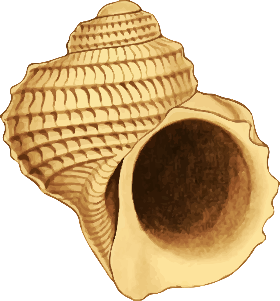This features a close-up of an open shell, likely a clam or a snail. The shell is brown and has a spiral pattern on its surface. Inside the shell, there is a small hole that appears to be empty at the moment. The overall scene gives off a sense of depth and intricacy as it showcases the natural beauty of this seashell.