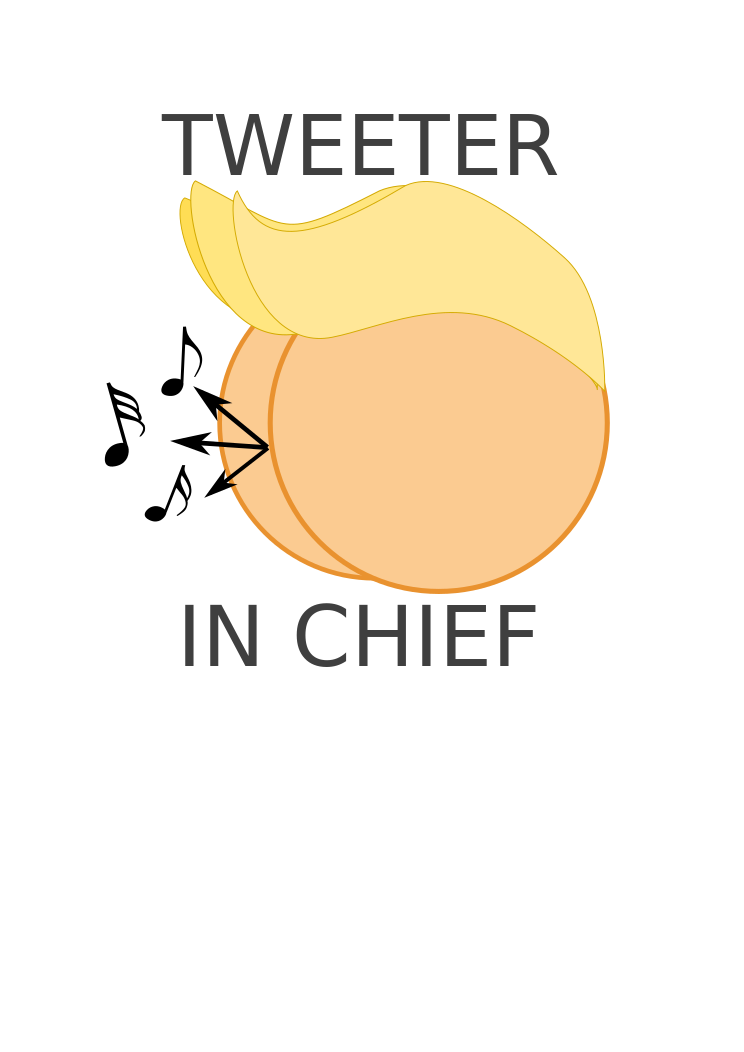 This features a cartoon character, possibly a donut or a piece of fruit, with the words "Twitter in Chief" written around it. This character is surrounded by musical notes, giving the impression that it's singing or playing an instrument. The overall scene appears to be a playful and creative representation of the concept of Twitter as a leader or authority figure.