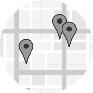 This displays a map with three dark grey colored markers, likely representing the locations of various points of interest. These markers are placed at different positions on the map, indicating their relative distances from one another and possibly providing information about their proximity to specific landmarks or points of interest. The map itself is a grid-like pattern, which adds to its visual appeal and helps users navigate through the area more easily.