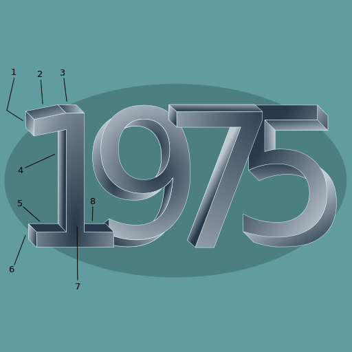 This is a close-up of the number 1975, which appears to be made from metal or silver. It has a shiny and reflective surface, giving it an elegant appearance. The number is displayed prominently in the foreground, with no other objects or distractions visible in the background. This artistic representation of the year may evoke feelings of nostalgia or serve as a decorative piece to showcase one's appreciation for the past.