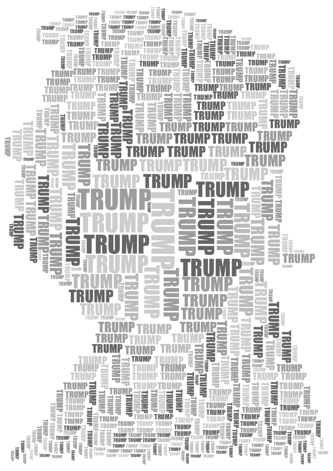 This features a large word cloud made up of the word "Trump" repeated numerous times. The word is displayed in various sizes and orientations, creating an intricate pattern that fills most of the frame. This unique visual representation of the name Trump showcases its prominence and impact on our society.