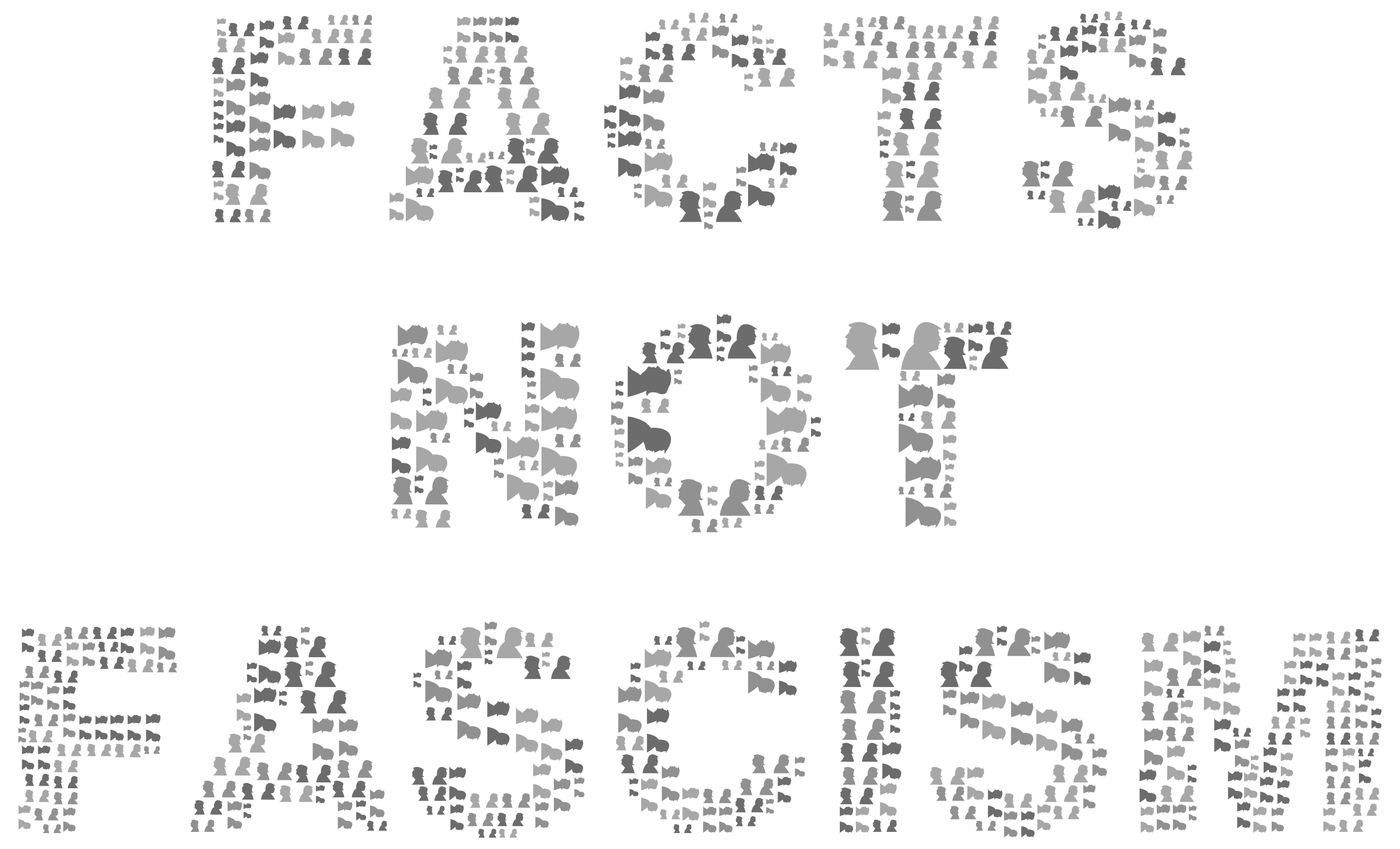 This features a poster with the words "Facts not fascism" written in three rows. Each row is made up of individual figures, creating an interesting visual effect. The poster itself has a grey color and appears to be a motivational or educational piece. The use of figures instead of traditional text adds a unique touch to the design, making it stand out as a creative and thought-provoking piece.