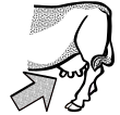 This features a cow's udder with an arrow pointing towards it. The udder is depicted in black and white, giving the drawing a classic or vintage appearance. The cow itself appears to be standing on two legs, with one leg positioned slightly higher than the other. This unique perspective of the cow's body highlights its udder as the main focus of the image.