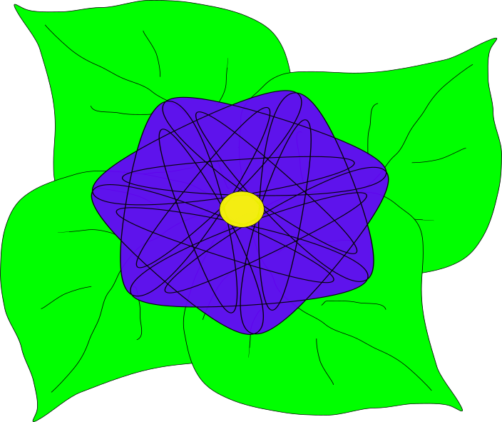 This features a large, colorful flower with green and purple petals. It is surrounded by a series of yellow dots that create an interesting contrast against the vibrant colors of the flower. The flower appears to be in the center of the scene, drawing attention as the main focal point. The combination of the bright colors and intricate dot pattern creates a visually appealing and unique design.