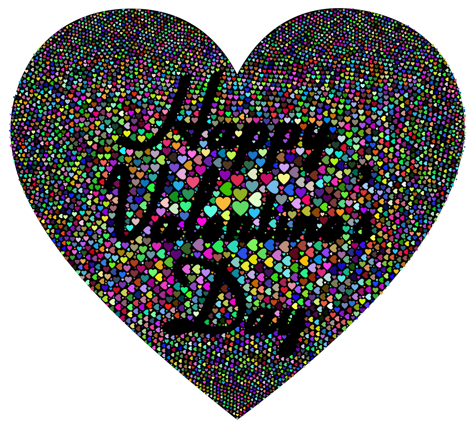 This features a heart-shaped design with the words "Happy Valentine's Day" written in the center. The heart is made up of various colored dots, creating a visually appealing and festive appearance. The colors used for the dots are predominantly red, green, blue, yellow, and orange, giving the heart a vibrant and lively look. This design can be used as a decoration or gift card to celebrate Valentine's Day with loved ones.