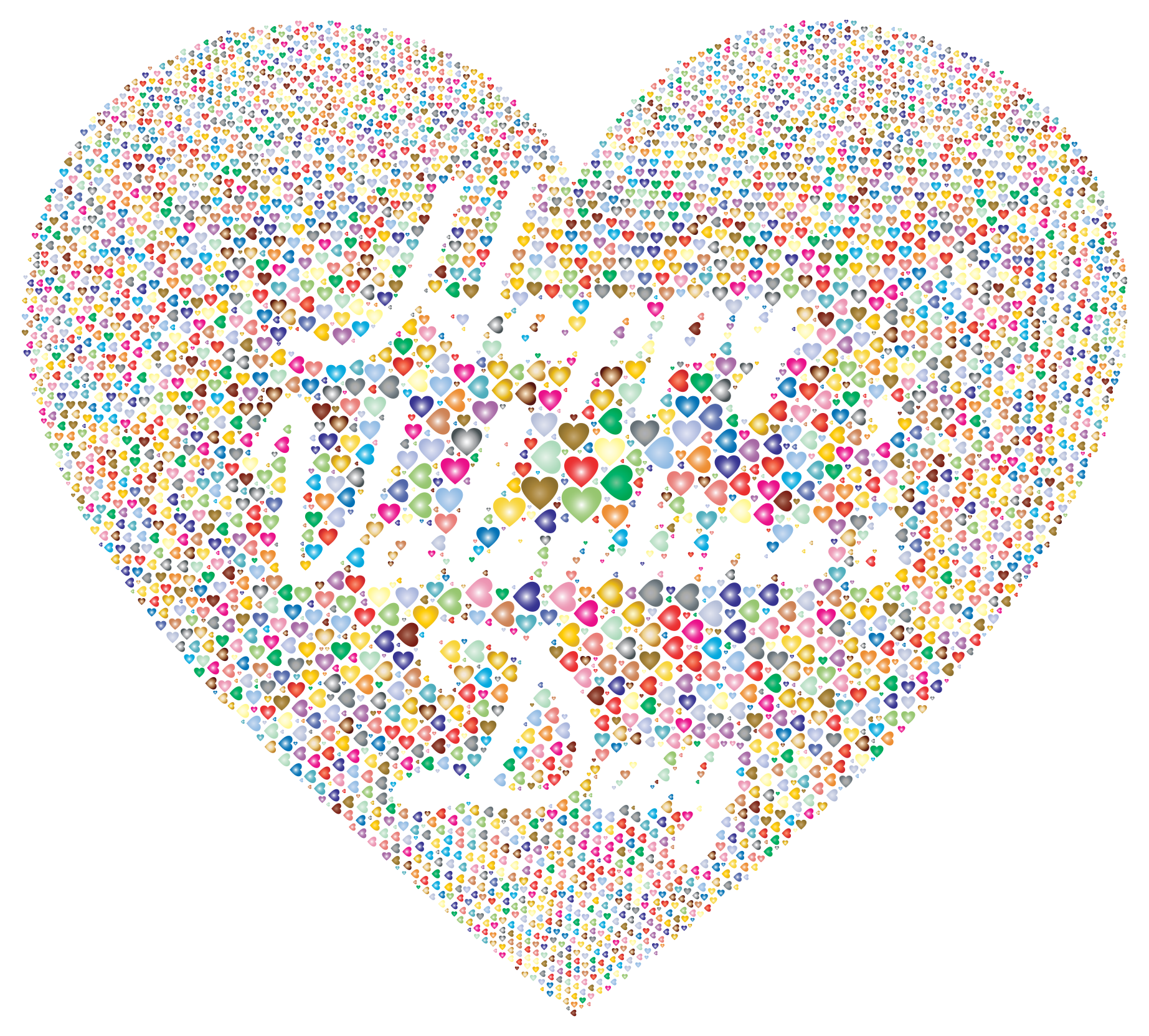 This features a heart-shaped collage made up of various colored hearts. These hearts are arranged in different sizes and shapes, creating an eye-catching display. The hearts are scattered all over the heart shape, with some placed closer to the center while others are positioned towards the edges. This unique design showcases a creative approach to celebrating Valentine's Day.