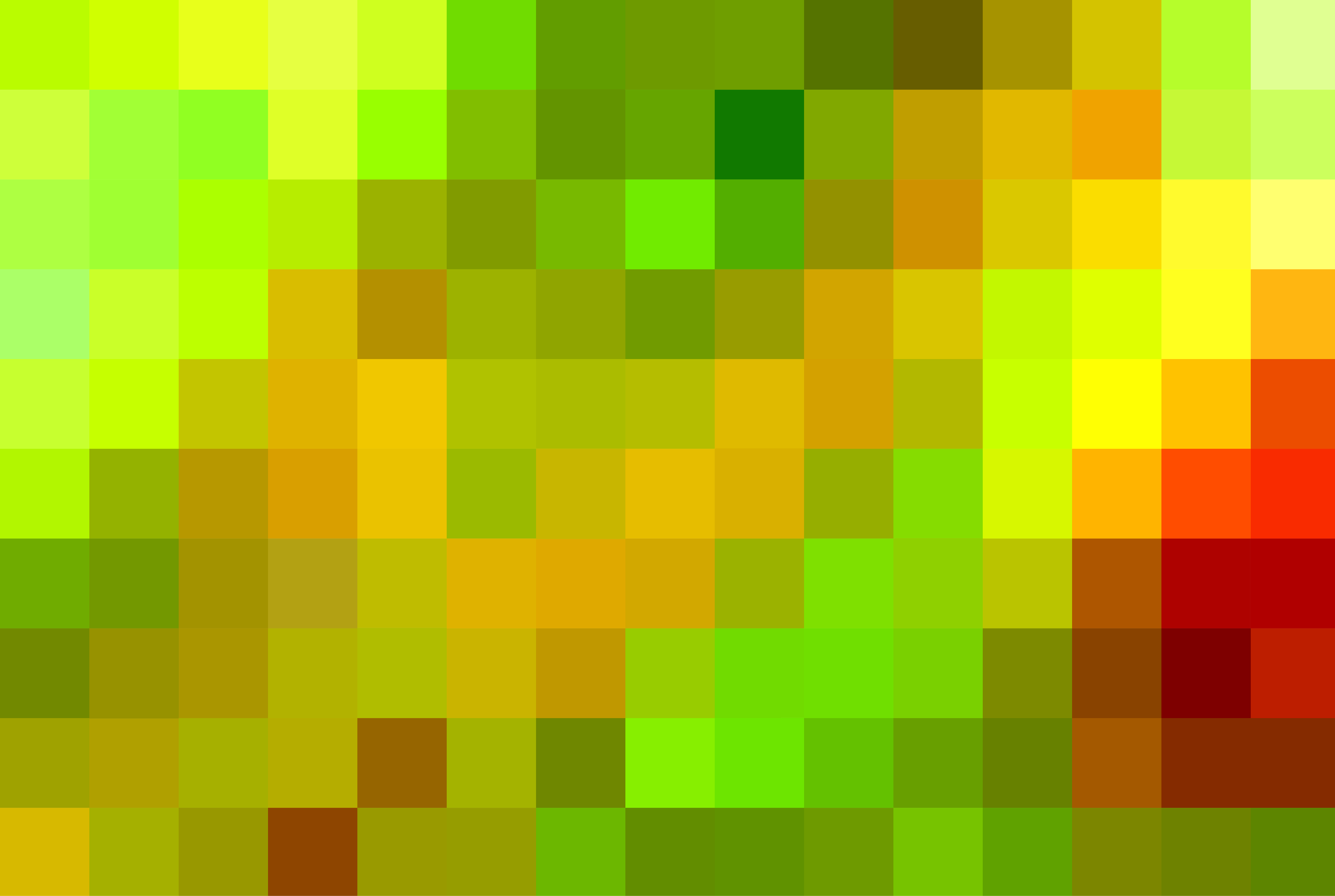 This is a colorful, pixelated picture of a field with green and yellow colors. There are several small squares in the scene that make up the larger picture. The field appears to be filled with grass, giving it a lush and vibrant appearance. The overall effect of the image is a visually appealing and artistic representation of nature.