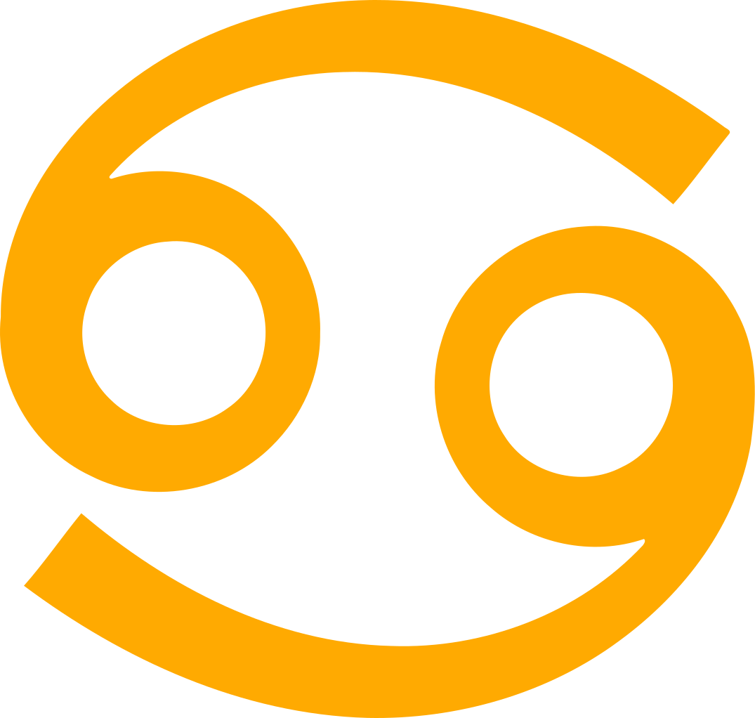 This features a yellow and orange circle with the number 6 inside. This circle is part of an emblem that represents the zodiac sign for Cancer, which is the fourth sign in the astrological calendar. Cancer is known to be represented by the crab, and this symbol can often be seen on various items such as clothing or accessories. The colorful design of the circle adds a unique touch to the emblem, making it visually appealing and easily recognizable.