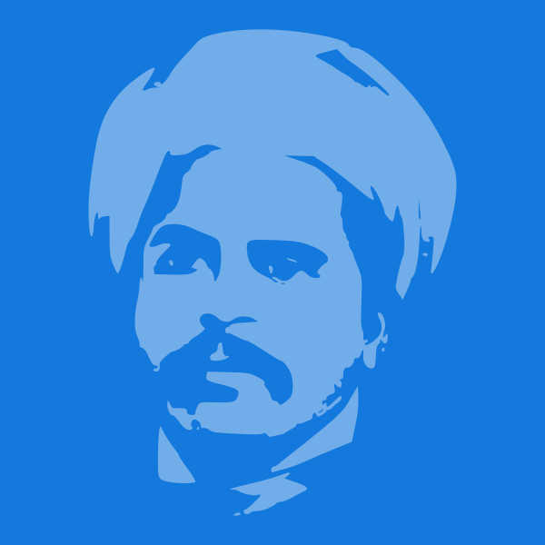 This is a blue silhouette of a man with a beard and mustache. He has dark hair, and his head is turned to the side. His facial features are prominent in the silhouette, making it easy to recognize him as an individual. The man's attire appears to be formal or professional, suggesting that he might be a businessman or someone of importance. Overall, the image captures a distinctive and recognizable portrait of the man with his unique features and style.