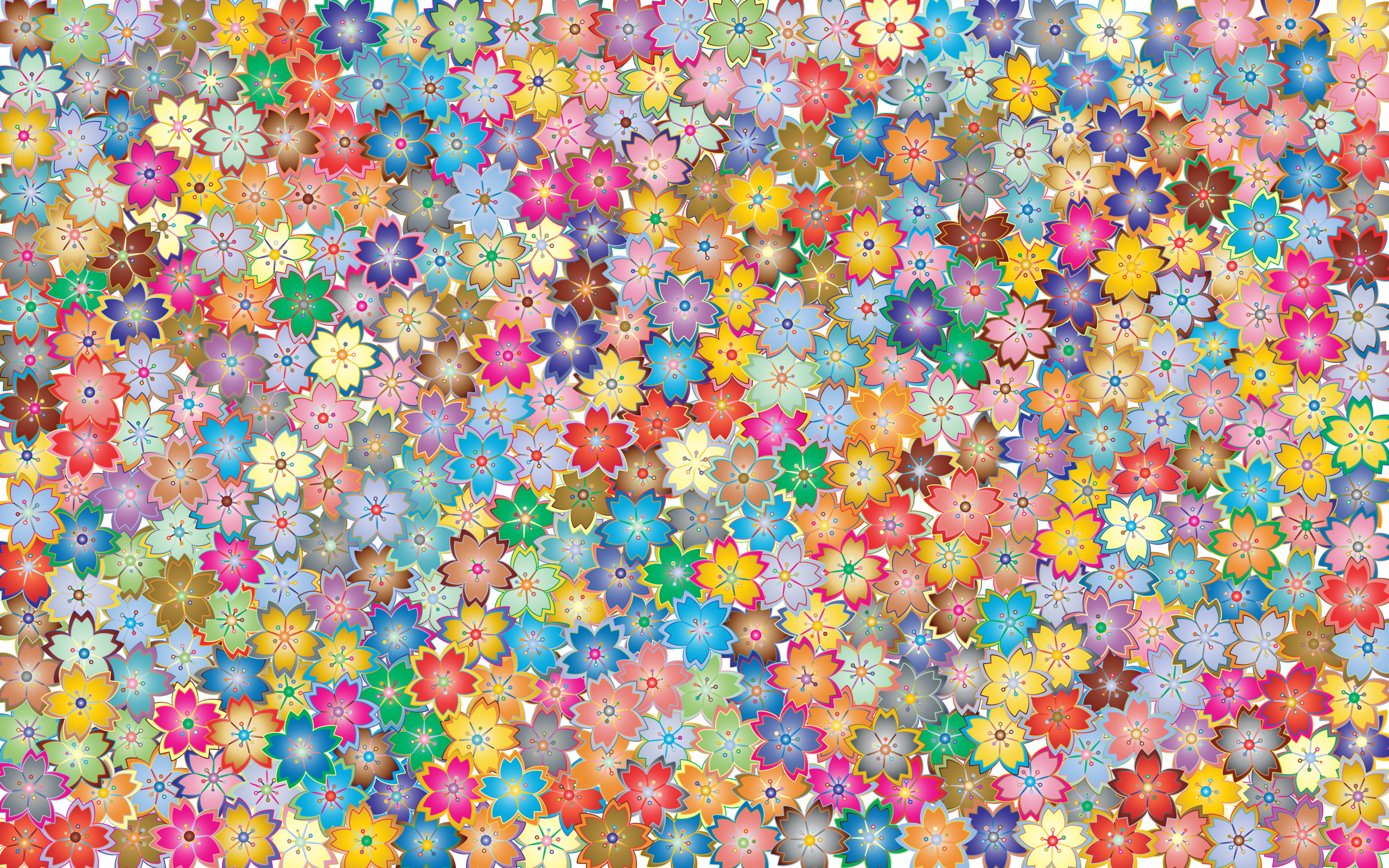 This features a colorful and vibrant pattern of flowers, with each flower being made up of smaller circles. These circles are scattered throughout the scene in various sizes and colors, creating an eye-catching and lively design. The overall effect is that of a large mosaic or collage, where individual pieces come together to form a cohesive whole. This artistic display could be used as wallpaper or decoration for any space, adding a touch of color and creativity to the environment.