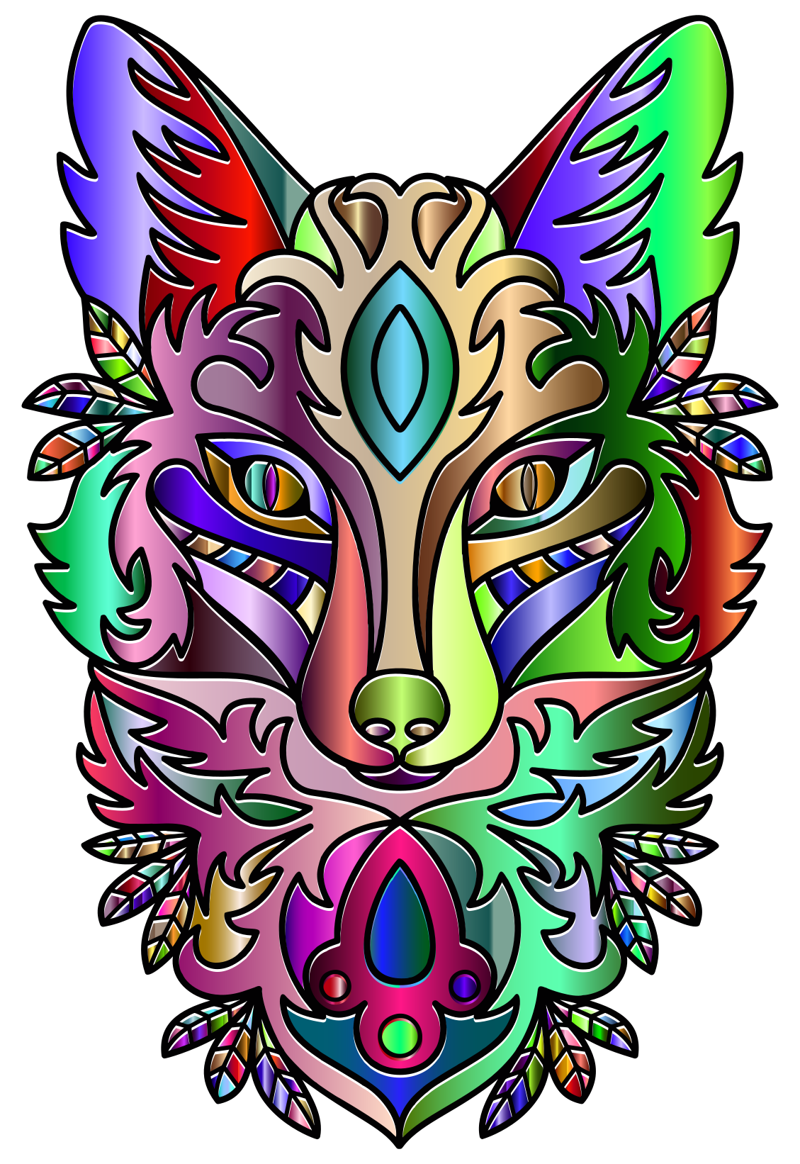 Tags: animal, chromatic, colorful, decorative, floral, fox, line art, ornamental, prismatic, rainbow, tribal, eye, mouth, teeth, design