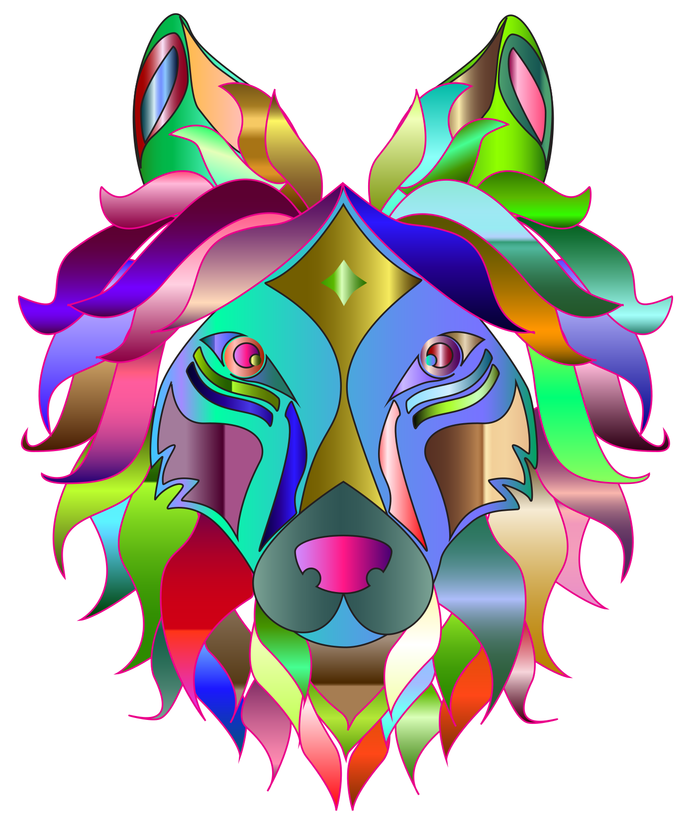 Tags: animal, chromatic, colorful, decorative, line art, lupus, ornamental, prismatic, rainbow, wild, wolf, wolf colorful