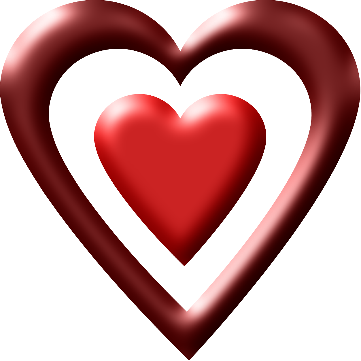 This features a large, red heart with a smaller heart inside of it. This design creates an interesting visual effect that highlights the love and affection associated with hearts. The larger heart is prominently displayed in the foreground, while the smaller heart is positioned within its center, drawing attention to the intricate details of the design. Overall, this image showcases a creative and unique representation of love and affection through the use of two interconnected hearts.