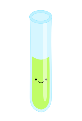 This features a cartoon-like vial with a face, which is half full of green liquid. It has a smiling expression and appears to be made of glass. The vial's design gives it an interesting and playful appearance. The color scheme of the vial includes a combination of yellow and green hues, adding to its unique visual appeal.