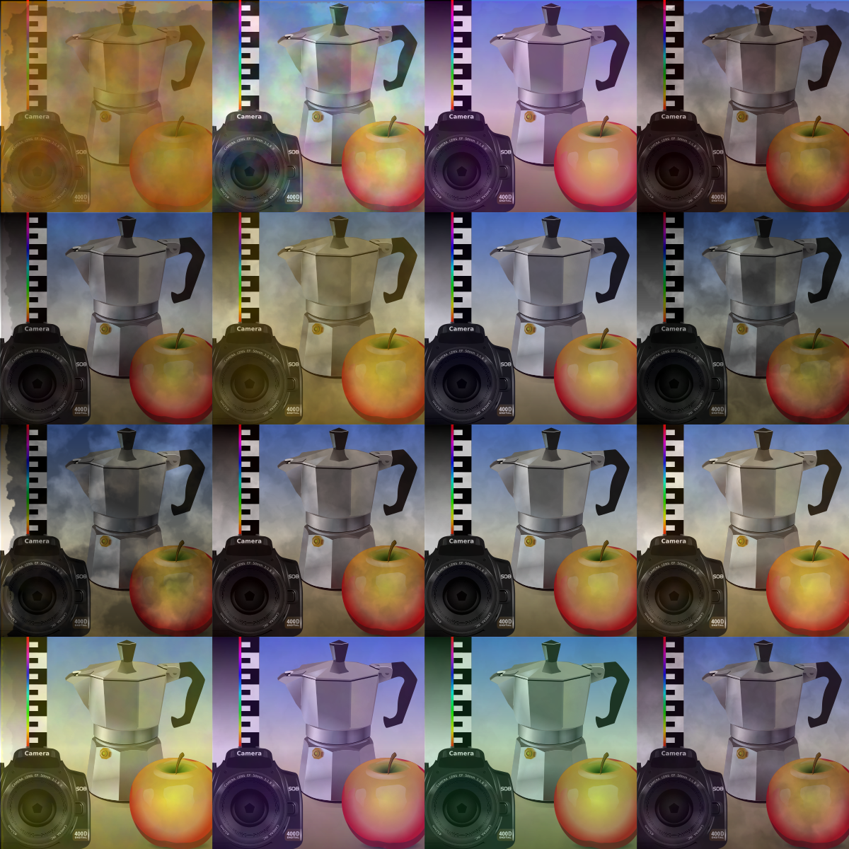 This features a collection of various apples and tea kettles. There are multiple shots of the same apple, each with different colors and lighting conditions. These apples are placed in front of the tea kettles, creating an interesting visual effect. In total, there are 13 distinct images of apples and 12 distinct images of tea kettles. The arrangement of these elements creates a unique and captivating composition that showcases both the apple and the tea kettle in different settings.