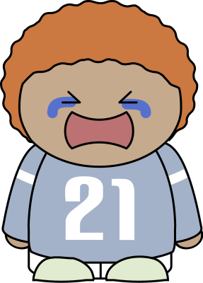 This features a cartoon character with orange hair, wearing a grey shirt with the number 21 on it. This character appears to be crying and has blue eyes. It is standing in front of a brown background, giving the impression that it might be an animated or drawn figure. The overall scene gives off a sense of sadness or distress, as the cartoon character seems to be experiencing emotional turmoil.