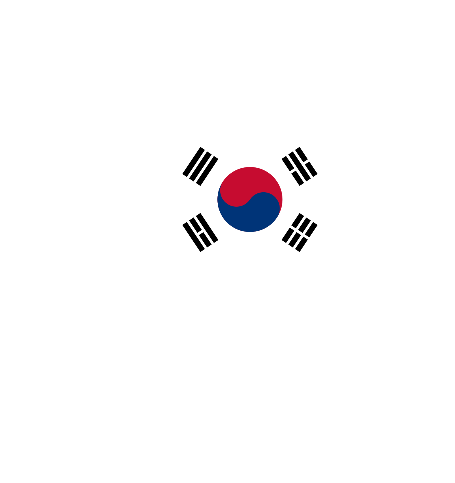 This features a white background with a small, colorful flag of South Korea. The flag is composed of three blue and red circles arranged in a triangular shape, with the circle on the left being larger than the other two. The flag is placed prominently in the center of the white background, drawing attention to its vibrant colors and unique design.