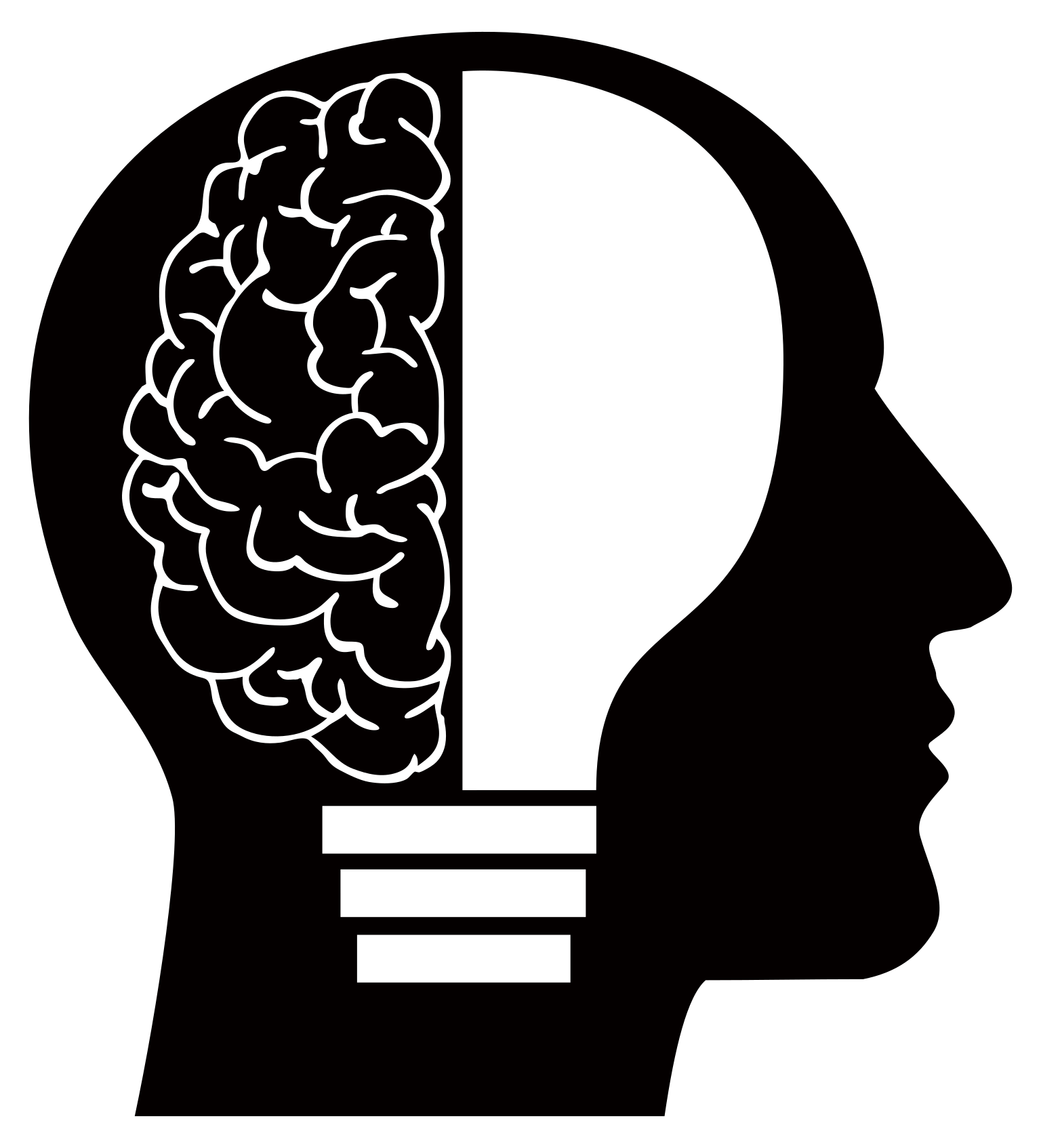 This features a black and white illustration of a human head, with the brain visible on one side. On the other side, there is an outline of a light bulb, symbolizing the connection between the brain and the source of thought or intelligence. This creative representation of the mind's function highlights the importance of mental processes in our daily lives. The contrasting colors and simple design make it an appealing visual for various purposes, such as educational materials or artistic expressions.