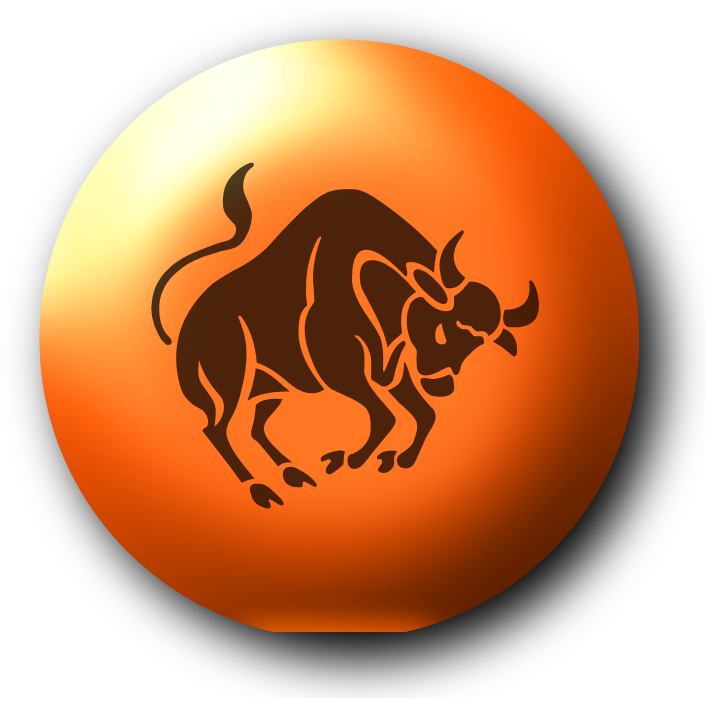 This features a round orange object with an illustration of a bull on it. The bull is depicted in black and brown colors, giving the impression that it's a tattoo or a sticker. The bull appears to be standing on its hind legs, possibly indicating strength or power. The overall design gives off a bold and striking appearance, making it an eye-catching piece of artwork or decoration.