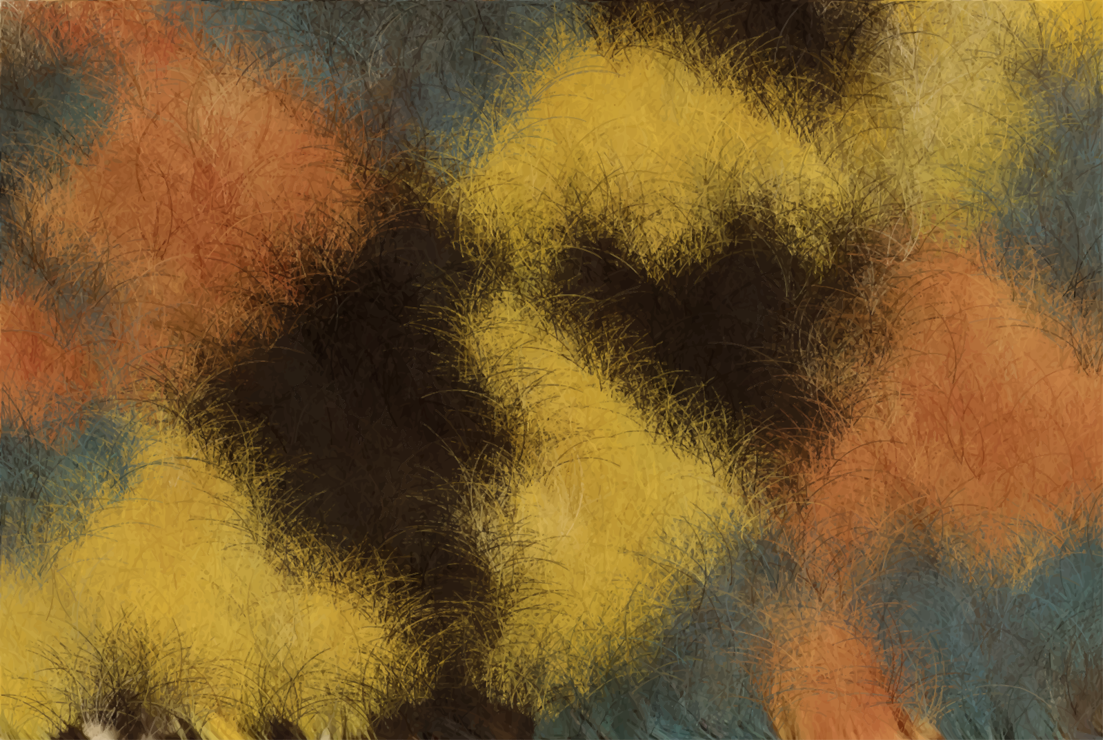 This features a colorful, abstract design with yellow and brown hues. The pattern is reminiscent of a checkered or diamond-shaped motif, giving the impression of a quilted texture. The colors are rich and vibrant, creating an eye-catching visual effect. The overall composition of the image appears to be somewhat blurry, adding a sense of depth and complexity to the design.