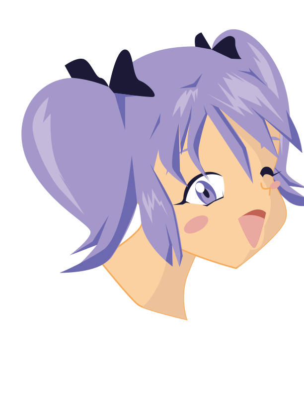 This features a cartoon anime girl with purple hair and two ponytails. She is wearing a bow in her hair, giving her a cute appearance. Her mouth is open as if she's about to speak or make a sound. The girl appears to be the main focus of the scene, taking up most of the image.