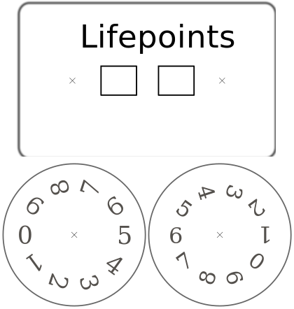 This features a counter for life points, which is designed with two large circles containing numbers. These circles are placed under the word "Lifepoints" on the top left of the image. Below these circles, there are two smaller squares that appear to be used for additional calculations or input. The overall design of this counter suggests a simple and straightforward approach to tracking life points.