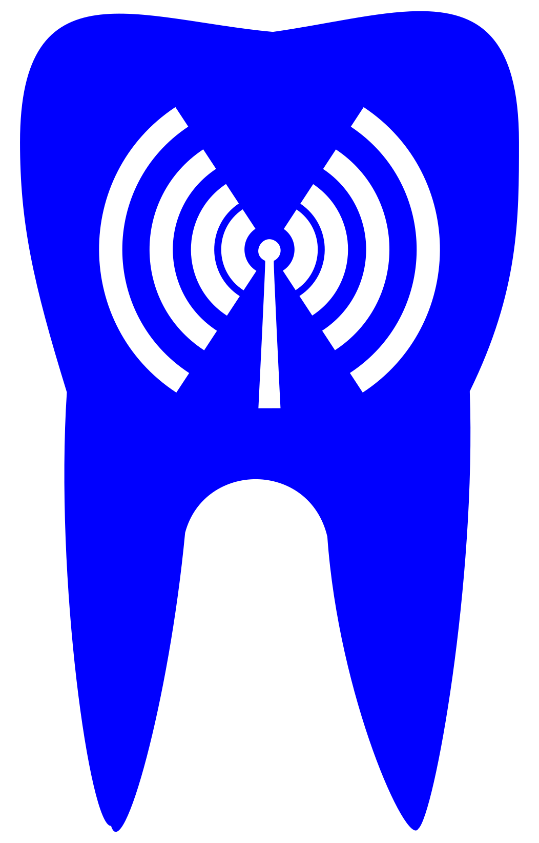 This features a blue tooth design with a signal pole on it. The tooth is prominently displayed in the foreground, while the signal pole extends outwards from behind it. This unique design gives an interesting perspective on how technology can be incorporated into everyday objects like teeth. The combination of the blue color and the white signal pole creates a visually appealing contrast that draws attention to the image.
