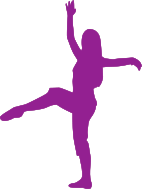 This features a silhouette of a woman dancing, with her arms raised in the air. She appears to be performing a ballet move or a similar dance style. The silhouette is purple and black, creating an artistic and dynamic visual effect. The woman's body position suggests that she is fully engaged in her performance, showcasing her skill and passion for dance.