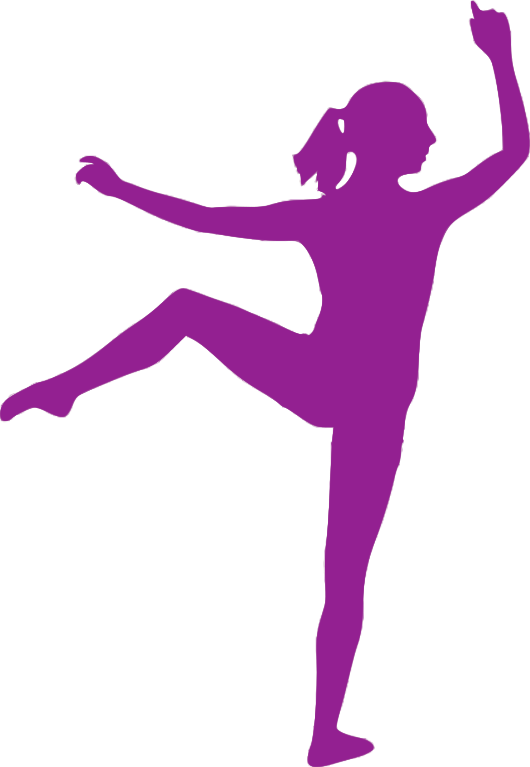This features a silhouette of a woman in motion, possibly dancing. She is wearing a purple outfit and has her arms raised above her head as she performs the dance. Her body appears to be gracefully positioned, showcasing her skill and talent in this art form. The silhouette creates an interesting visual effect that highlights the woman's movement and posture while emphasizing the elegance of her performance.