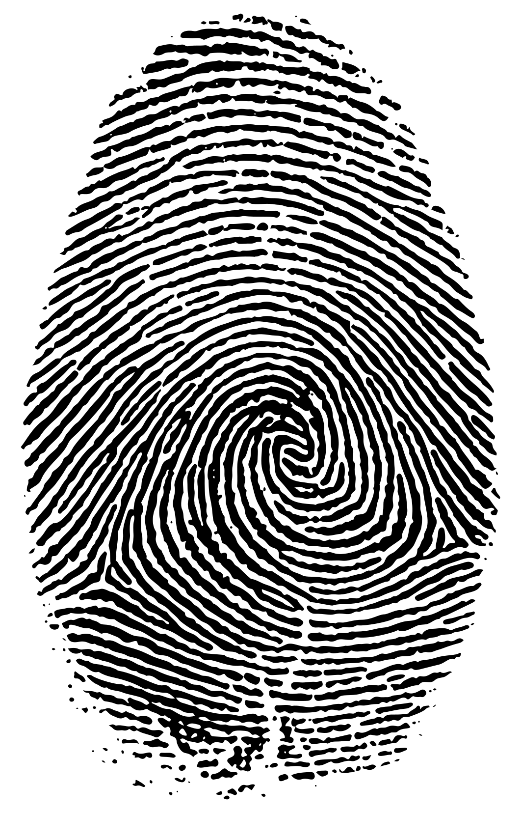 This features a close-up of a fingerprint, which is the unique pattern formed by the ridges and valleys on the skin of a person's fingertips. This particular print appears to be an old one, possibly from someone who has been using it for identification purposes over time. The print is circular in shape, with its center located towards the top left corner of the image. The fingerprint is surrounded by a white background that highlights its distinctive features and makes it stand out prominently against the rest of the image.