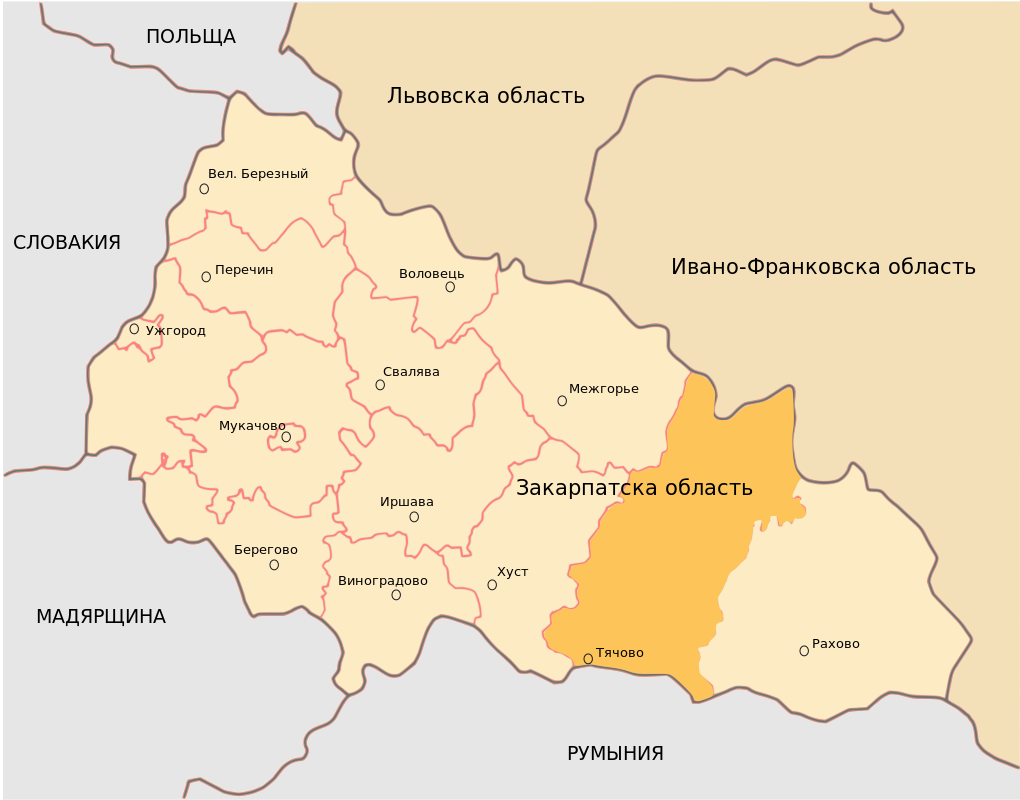 This is a completely free image Map of Tiachiv District that you can download, post, and use for any purpose.