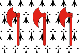This features a pattern of red and black axes, with each axe having a different size. There are three large axes in the center of the scene, while two smaller ones can be seen on either side. These axes are arranged in such a way that they create an interesting visual effect. The overall design gives off a sense of strength and power, making it an intriguing pattern to observe.