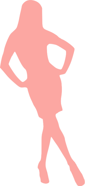 This features a woman in silhouette, standing with her hands on her hips. She is wearing a dress and appears to be posing for the camera. Her figure is prominently displayed against a light brown background that contrasts well with her pinkish-red color. This silhouette creates an interesting visual effect, highlighting the woman's shape and posture without revealing any specific details about her face or clothing. The overall composition of the image emphasizes the woman's presence and adds a sense of depth to the scene.