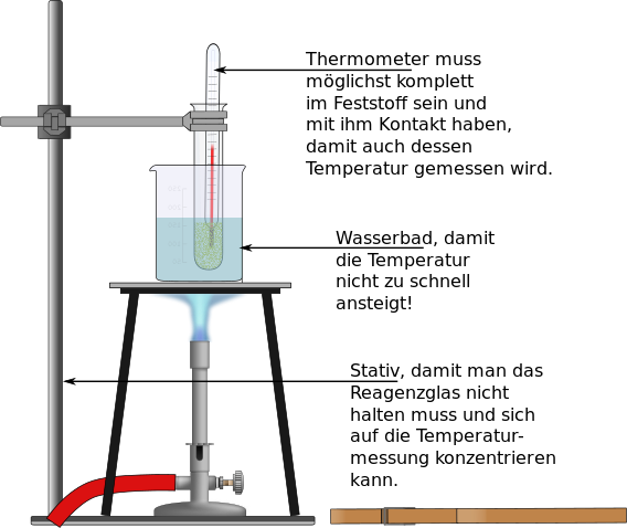 This displays a beaker filled with water, which is being heated. There are several thermometers placed around the beaker to measure its temperature. A measuring cup can also be seen next to the beaker. The experiment seems to involve observing the effects of heat on the water in the beaker. The text on the right side provides information about the objects and their functions, making it easier for viewers to understand the process being demonstrated.