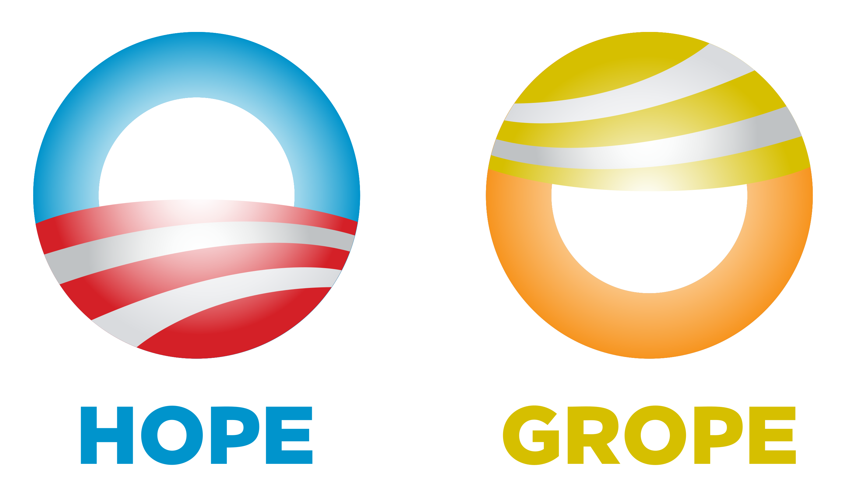 This features two signs, one with the word "Hope" and the other with the word "Grope." Both signs are represented by a circle, but they differ in color. The sign for Hope is blue and has a red and white stripes on it, while the sign for Grope is orange and has yellow and white stripes on it. These signs are placed next to each other, making them easily distinguishable from one another.