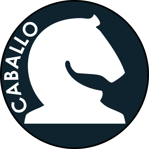 This features a black and white logo of a horse head, with the word "Caballo" written in white. The horse's head is prominently displayed on the left side of the logo, while the word "Caballo" is positioned around the right side. This design gives an impression of a chess piece, which adds to its unique and intriguing appearance.