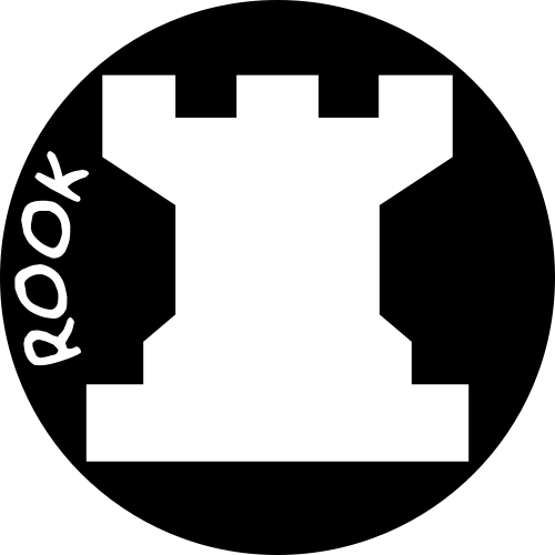 This features a black and white circle with the word "Rook" written in white. Inside the circle, there is an illustration of a castle or a building, which adds to the overall theme of the design. The combination of the word and the illustration creates a visually appealing and unique piece that can be used for various purposes such as decorations, stickers, or even as part of a logo.