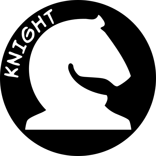 This features a black and white circular design with the word "Knight" written in white. In the center of the circle, there is an illustration of a horse's head, giving it a unique appearance. The combination of the word "Knight" and the horse's head creates a visually appealing and intriguing design that stands out on its own.