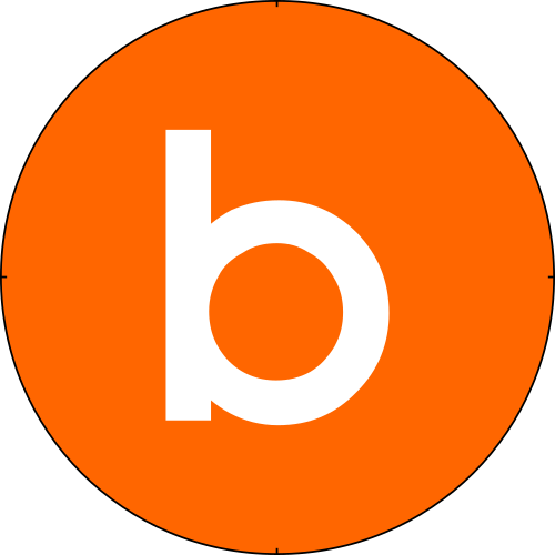 This features a large, round orange circle with the letter "B" in white. The color of the circle is predominantly orange, giving it a vibrant and bold appearance. The white letter "B" stands out against the orange background, making it easy to read and identify. This design could be used for various purposes such as branding or decoration, where the letter "B" serves as an eye-catching focal point.