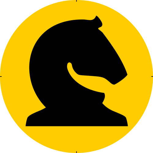 This features a yellow circle with a black and white chess piece in the center. The chess piece is positioned to look like it's talking, giving an amusing twist to the classic game of chess. The chess piece appears to be a knight, which is one of the most common pieces used in the game. The yellow circle surrounding the black and white chess piece adds a playful touch to the overall design.