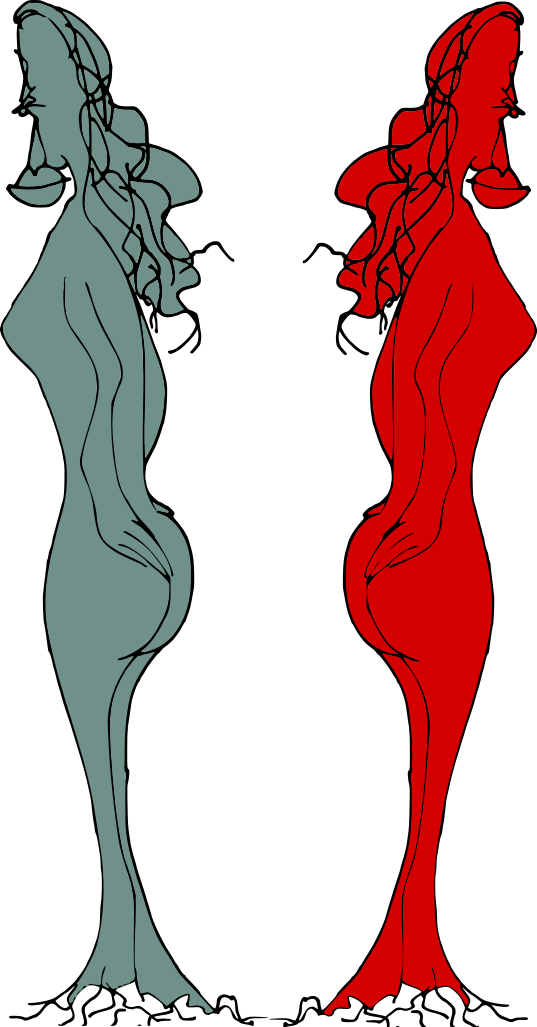 This features two abstract women models, each with a different color. One of the women is red and the other one is green. They are standing next to each other, creating an interesting contrast between their colors. Both women have long hair, which adds to their unique appearance. Their body shapes also differ, making them distinct from one another. The image captures these two models in a visually appealing manner, showcasing their individuality and the striking color combinations they represent.