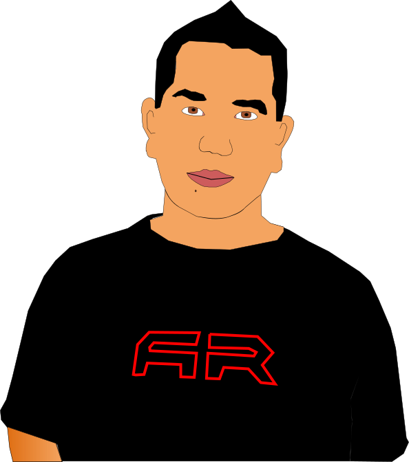 Tags: man, black shirt, red letter